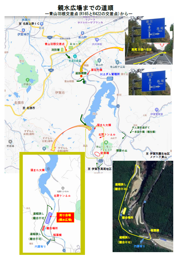 池の傍まで、車でお入り頂けます。道幅が狭い為、充分注意してお越しください。